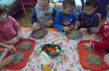 Бүген балалар ком илендә кунакта булдылар. Тәрбияче тарафыннан ясаган «тере ком» белән уйнарга өйрәнделәр. Тере комга эзләр, сүрәтләр, күмәч ясап кисәргә, төрле геометрик фигуралар өяргә өйрәнделәр, комнан төрле фигуралар өвөлөп карадылар. -