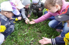 С детьми провели экскурсию на мини-лес который находится в детском саду. Наблюдали за растениями, за кустарниками, за деревьями. Познакомились с цветками черемухи, рябины, сирени. Сравнили цветки этих растений. Познакомились с лекарственными растениями, крапивой, полынь, фиалки, постушье сумке, одуванчик. Собрали цветы одуванчика, поиграли в считалку, и из одуванчиков заплели с девочками венки.