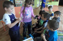 Сегодня мы играли сюжетно-ролевую игру "Журналисты". Сначало познакомились с печатными изданиями: газетами, журналами для взрослых и детей. Воспитатель ознакомила детей откуда появляется статьи и кто их пишет. Познакомились с профессией журналиста, после дети сами стали журналистами, брали инрьвью друг у друга. Темы беседы были различные про школу, про посевные работы в огороде, кто кем хочет стать. Всем было интересно и весело.