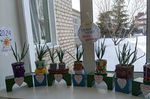 По традиции в марте мы с ребятами сажаем лук. А в этом году в Год семьи ребята дома посадили лук с родителями и принесли в детский сад. Вот такой красивый огород из лука получилась у нас на окне./ Һәр елны балалар белән бакчада тәрәзә төбендә яшелчәләр үстерү белән шөгельләнәбез. Ә менә быел Гаилә елы булу белән Гаилә бакчасы оештырылды. Һәрбер бала әти-әнисе белән өйдз суган утыртып бакчага алып килделәр.