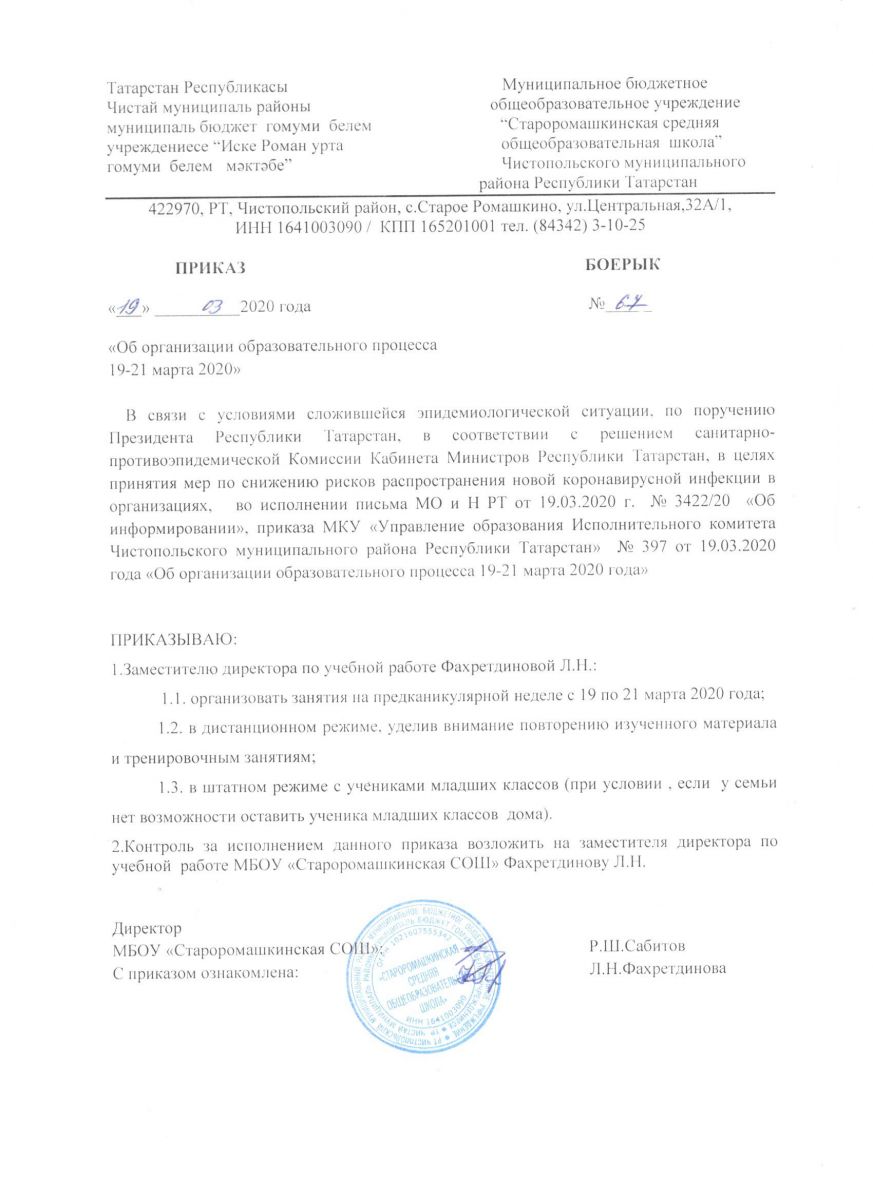 Приказ "Об организации образовательного процесса 19-21 марта 2020".jpeg