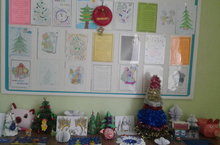 Укытучылар һәм укучылар мәктәпне Яңа елга бизәү эшенә керештеләр: рәсемнәр һәм кул эшләреннән күргәзмә ясалды.