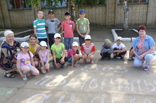 Балалар уеннар уйнадылар, асфальтка рәсемнәр ясадылар.