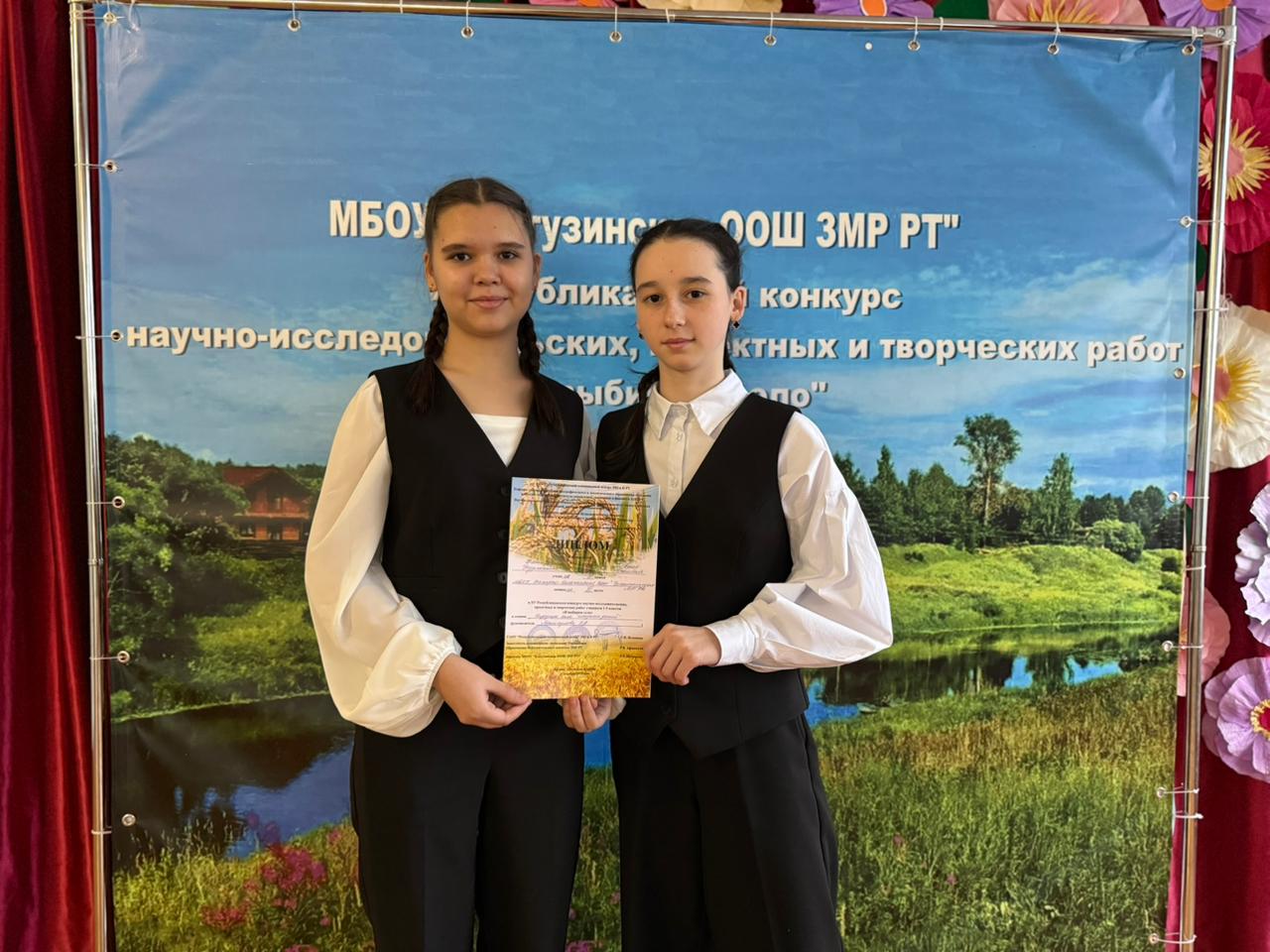 Ученицы 9 класса, Нургатина Сюмбель, Фатхуллина Зиля (учитель Мингулова Р.Я.) заняли III место на XV Республиканском конкурсе научно-исследовательских, проектных и творческих работ учащихся 1-9 классов "Я выбираю село" в секции "Будущее села глазами детей". Поздравляем!!!