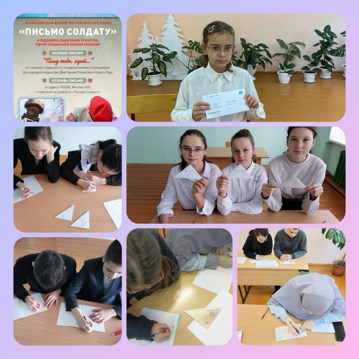 По всей стране проходит Всероссийская акция «Письмо солдату». К участию присоединились и учащиеся нашей школы. Ребята рассказали в письмах о себе, своих мечтах, школьной жизни и выразили слова благодарности и поддержки тем, кто сегодня, рискуя своей жизнью, обеспечивает мирное будущее нашей страны.