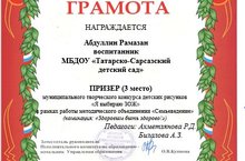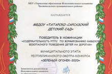 Мы победители муниципального этапа республиканского конкурса "Зеленый огонек" в номинации "Содержательность РППС по формированию навыков безопасного поведения детей на дорогах" 24.03.2020