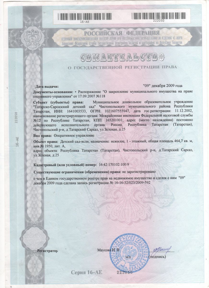 | Адрес: | 422980, Республика Татарстан, Чистопольский район, дер. Татарский Сарсаз, ул. Зелёная, д. 25 |
