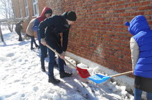 Бүген мәктәп янын кардан чистарту буенча өмә булды.