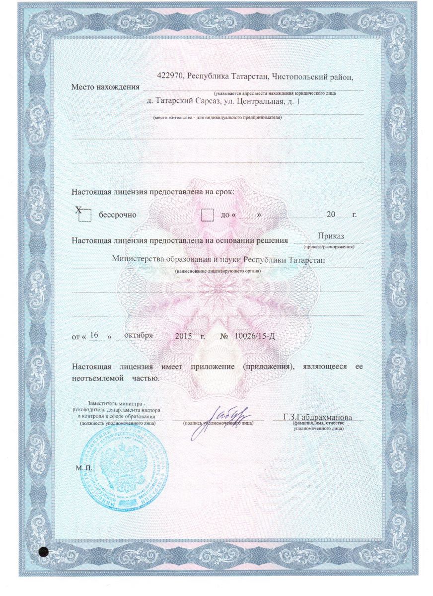 Адрес: 422970, Республика Татарстан, Чистопольский район, д. Татарский Сарсаз, ул. Центральная, д. 1