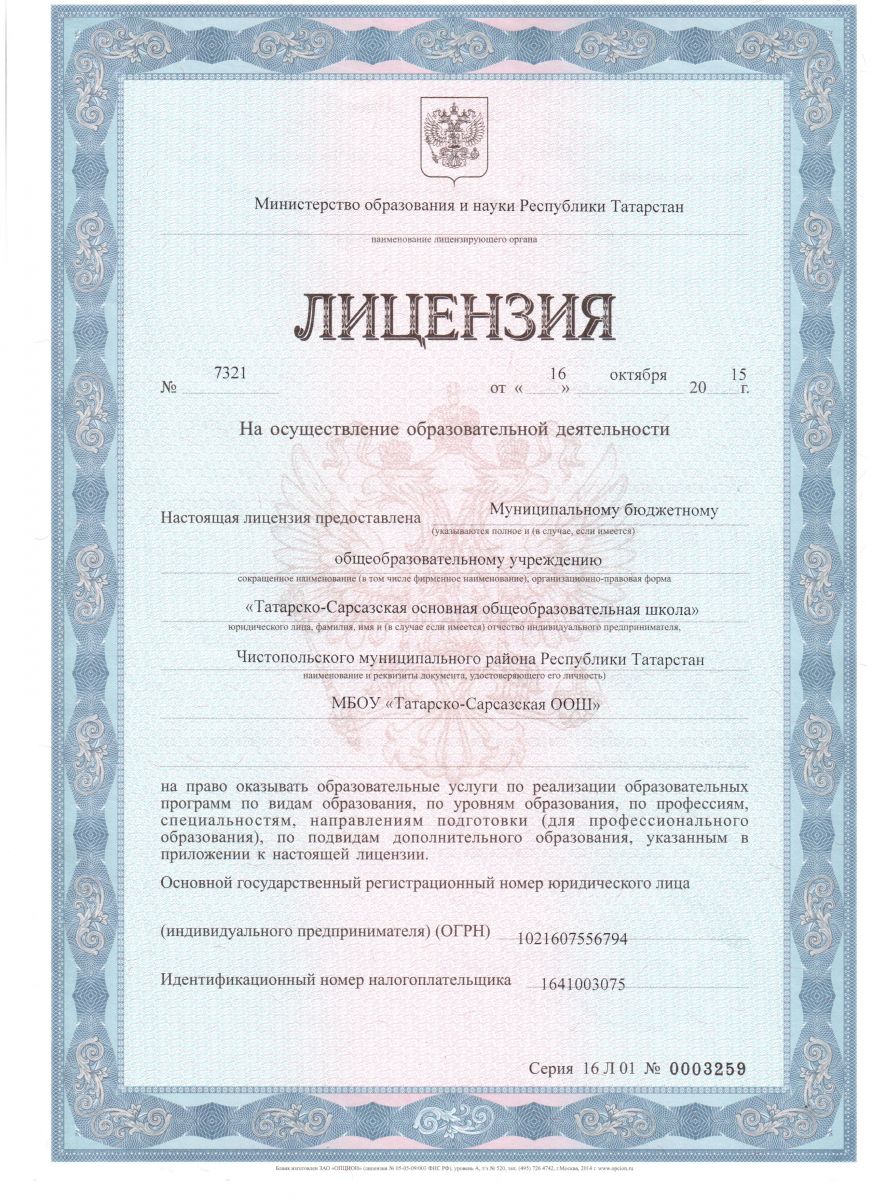 Муниципальное бюджетное общеобразовательное учреждение «Татарско-Сарсазская основная общеобразовательная школа» Чистопольского муниципального района Республики Татарстан/ Татарстан Республикасы " Татар Сарсазы төп гомуми белем бирү мәктәбе" муниципаль бюджет гомуми белем бирү учреждениесе