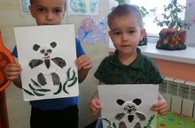 «Панда» аппликациясе. Балаларны кызыл китапка кергән хайван белән таныштырдык.Балалар аюның тышкы кыяфәтен, яшәү тирәлеге турында күзаллауларын формалаштырдык.Мамык дискларны,панда образын тудырып,детальләрне җентекләп ябыштырырга өйрәндек. Пөхтә, мөстәкыйль эшли белүебезне тәрбиялибез.
