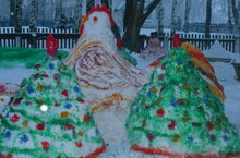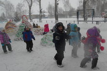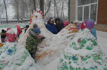 На участке детского сада благодаря детям и их воспитателям появились замечательные произведения из снега.