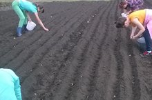 Сегодня учащиеся на пришкольном участке сеяли морковь.