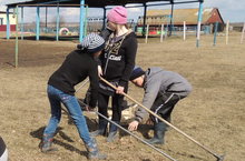 Все учащиеся школы вышли на субботник. Убирали мусор вдоль дорог, по территории школы.