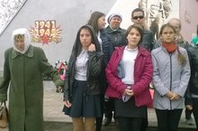 Учащиеся нашей школы участвовали на митинге, посвященный дню Победы, возложили венок к памятнику героям. павшим в боях за Родину.