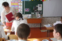 | У нас учат: | 13 учителей - дефектологов, 6 воспитателей/ Бездә укыталар: 13 укытучы- дефектолог, 5 тәрбияче |