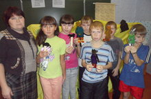 Пятый день -подведение итогов недели, прошло под названием "В мире красок" Прежде чем получить призы и подарки: ребятам пришлось приложить немало усилий-они соревновались между собой в рисовании красками, в вырезании бумаги и склеевании аппликации.