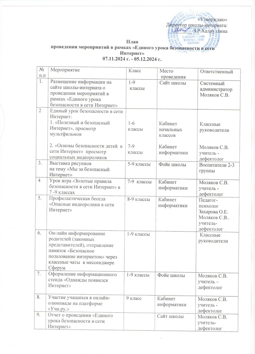 План мероприятий в рамках "Единого урока безопасности в сети ИНТЕРНЕТ"
