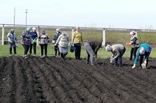 Сегодня сотрудники школы на пришкольном учаске посадили морковь, столовую свеклу и лук.
