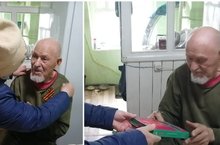 Акция "Подарок ветерану" и "Георгиевская ленточка" Встреча с ветераном тыла Аглиуллином Якуб абый.