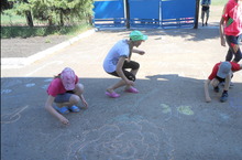 1 июня состоялся праздник День Защиты детей. Восп на асфальте рисунки. Затем играли в игры и участвовали в концерте.итанники пришкольного лагеря рисовали мелом на асфальте рисунки. Затем играли в игры и участвовали в концерте.