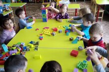Дети старшего возраста строят различные постройки из мелкого ЛЕГО.