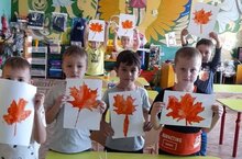 Жёлтый, красный, золотойДети старше-подготовительной группы в свободное время раскрашивали красками кленовые листочки. -