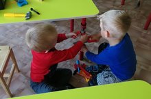 Наши дети очень любят играть со столярным набором, на этот раз они занялись ремонтом столов.