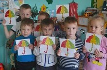 Называют «листопад».Дети разновозрастной группы разучивают движения к танцу "Осенние листочки".