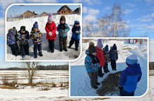 Дети разновозрастной группы во время дневной прогулки наблюдали за таянием снега.