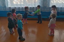 Дети ясельной группы очень любят играть в игру "Передай мяч соседу".