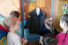 Дети с большим интересом продолжают знакомиться с работой сотрудника ГИБДД, на этот раз рассматривали одежду инспектора ДПС.