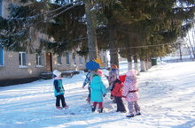 То и дело мои санкиУбегают от меня.Дети старше-подготовительной группы во время спортивного праздника "Зимние забавы". Эстафета "Быстрые санки". -