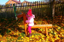 Поскакала, мам. Пока!Дети во время дневной прогулки любят покататься на лошадке.