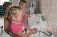 Станут наши ручки чище и белее!Умывание детей перед завтраком.