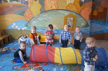 Игровое упражнение "Пролезь в тоннель". Дети ясельной группы.