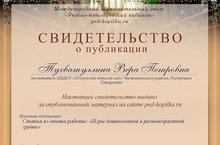 Воспитатель Тухватуллина В.П. опубликовала статью (из опыта работы) "Игры дошкольников в разновозрастной группе" на Международном образовательном сайте "Учебно - методический кабинет" ped-kopilka.ru