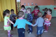 Хоровод "Подарки"Принесли мы всем подарки.Кто захочет, тот возьмет –Вот вам кукла с лентой яркой,Конь, волчок и самолет.Дети ясельной группы под руководством воспитателя Тухватуллиной В.П. во вторую половину дня играли в хороводную игру "Подарки". -