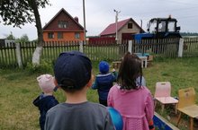 Наблюдение во время дневной прогулки за трактором, который косит траву.