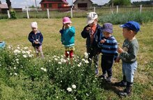 Расцвели цветы ромашки! 26.06.2023 Белые ромашки-сестрички, У ромашек белые реснички. Пляшут среди летнего луга. До чего похожи друг на друга! В рамках календарного плана, дети во время дневной прогулки наблюдали за ромашками.