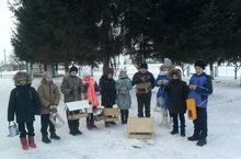 Состоялась акция "В помощь зимующим птицам", ребята 1-4 классов развесили кормушки в школьном саду