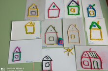 Ребята старшей группы сегодня побывали архитекторами, пофантазировали и придумали свои постройки. Сначала на белом картоне нарисовали простым карандашом дом. А потом взяли цветной пластилин и начали украшать свой дом. Для этого скатали пластилин в колбаску и присоединили к стенам дома, окнам, дверям. Домики получились разноцветные яркие и красивые.