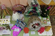 В канун Нового года, в нашем детском саду в каждой группе организована выставка поделок, сделанных своими руками «Новогодняя игрушка». Игрушки изготовили дети совместно с родителями. Все поделки очень интересные и по-новогоднему сказочные. Поделки поразили своей оригинальностью замысла, эстетичностью оформления, неповторимостью и яркостью, техникой выполнения. Разнообразен был и материал: бумага и нитки, ткань и вата, пластилин, пластиковые упаковки, ватные диски и палочки, фольга и т. д. Фантазия участников выставки не знала границ. И елочные игрушки, и веселые снеговики, и Дед Мороз со своей внучкой Снегурочкой, всего не перечислить! Но главное, что все это великолепие, превращающее наш детский сад на короткое время в чудесную новогоднюю сказку, выполнено руками воспитанников, их родителей и педагогов. Дети, рассматривая свои поделки в группе, были очень рады и горды! Это создавало особенное предновогоднее настроение!
