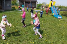 Подвижные игры и развлечение на свежем воздухе доставляют детям радость и приносят неоценимую пользу здоровью. Разнообразные подвижные игры и эстафеты с мячом обогащают содержание прогулок и очень увлекают детей. Мы с ребятами подготовительных групп провели игры и эстафеты с мячом. Играя на улице, дети получают возможность проявлять смелость, самостоятельность, ловкость и сноровку.