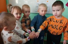 За выполнение задания получили наклейки, и вместе с воспитателем проговорили речевку: