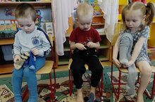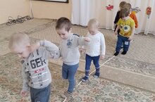 Малыши младшей группы учатся ходить по узкой дорожке 16.03.2022