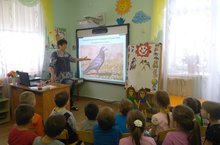 В начале занятия дети посмотрели презентацию фильма "Весна". Для закрепления примет весны провели дидактическую игру "Нарисуй весну". Весна - это когда ярче светит солнце, тают холодные снега, на деревьях набухают почки, прорастают первые цветы, от зимней спячки просыпаются звери. А еще весной прилетают птицы. Дети узнали о том, какие птицы называются "Перелётные", познакомились с некоторыми видами перелетных птиц (грач, скворец, ласточка), также узнали о том, что весной птицы вьют гнезда и высиживают птенцов.