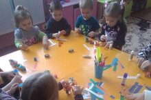Решили сегодня угостить бумажных кукол фруктами. Каждый решает сам, какой фрукт будет лепить, подбирая цвет, форму. На помощь младшим всегда придут старшие детки. Гости довольны таким разнообразием фруктов.
