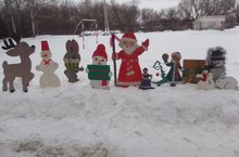 Родители наших воспитанников активно участвуют в конкурсах. Участники конкурса "Новогодний гость" расположили свои работы перед входом в детский сад. Дети радуются при виде новогодних персонажей.