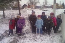 Наконец, после долгой осени, выпал первый снег. А это значит, пришло время зимним забавам. Например, лепка снежного колобка или снежной бабы.